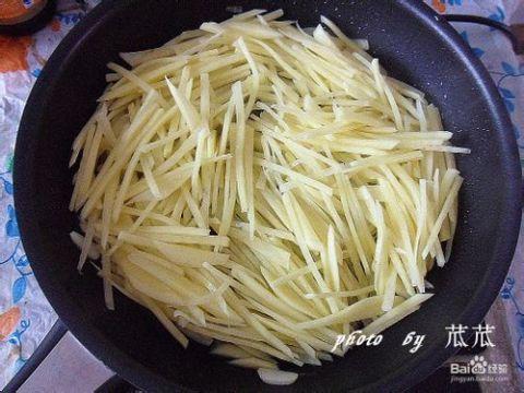 - 切丝:将土豆片平铺在砧板上,用刀背轻轻拍打,使土豆片更容易切丝。将土豆片卷起,用刀背压住,顺着土豆片的纹理切出细丝。
